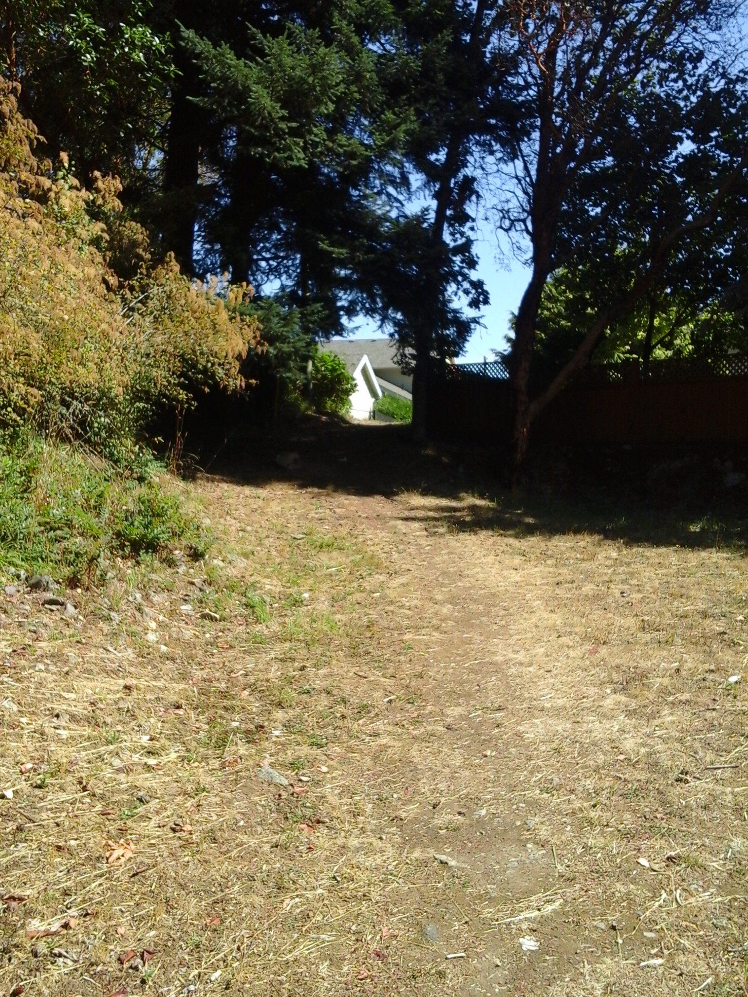 Shaw Park is in the Florence Lake neighborhood of Langford, B.C. This park is along the steep eastern slopes of Skirt Mountain and borders along Ironwood Park. Douglas fir and cedar trees provide shade of the gravel footpath through the park. The trail from Shaw Avenue is bordered by a chain link fence on the right and a wood fence to the left. Ocean spray and blackberry bushes grow along the gravel pathway that leads up Whisperwind Place. The pathway also leads toward a small open area and to Ironwood Park. Setchfield Shaw Green Space is across Shaw Avenue.