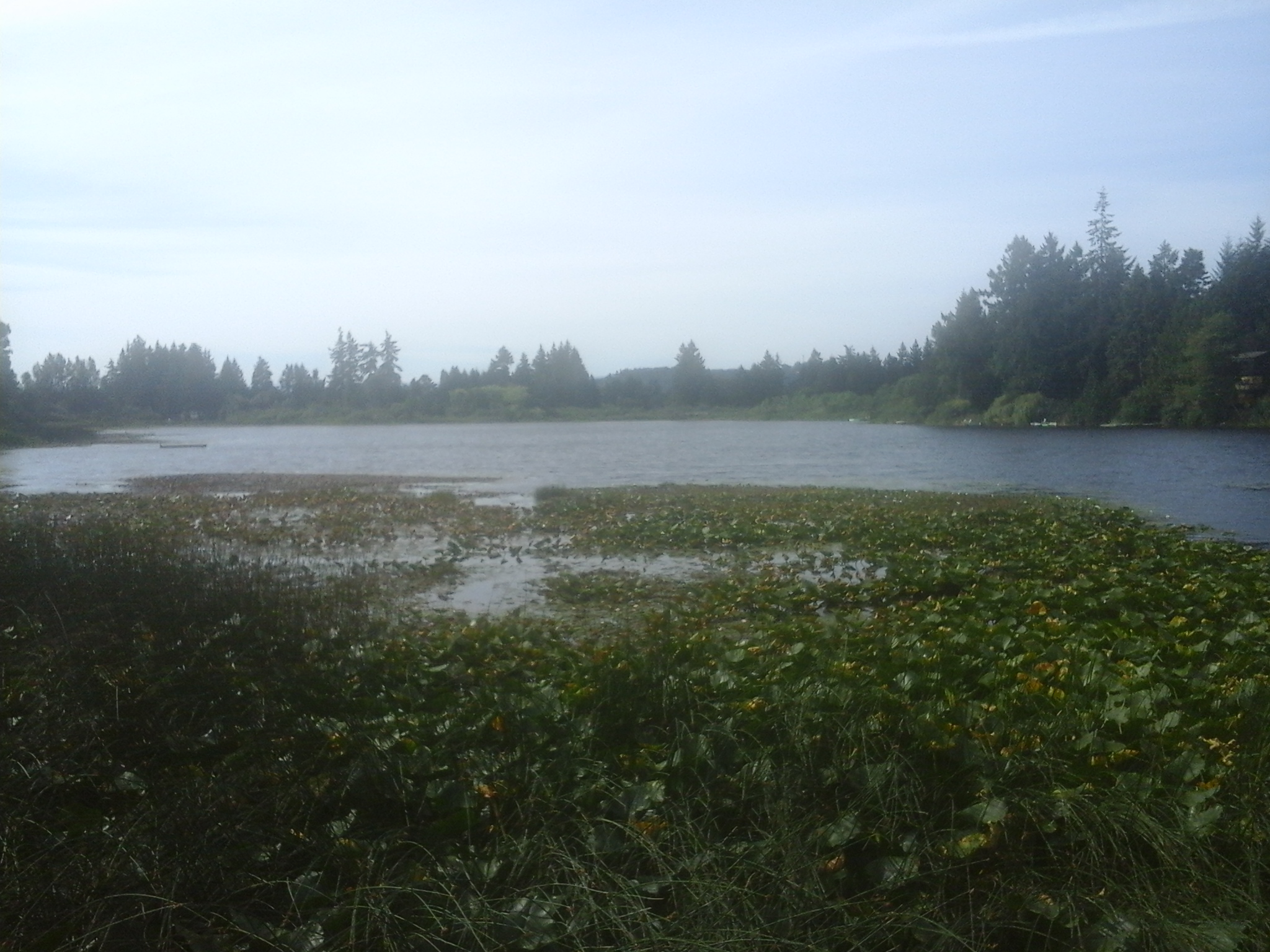 A sixty meter long boardwalk is the focal point for Florence Lake Park North. This park is found in the Florence Lake neighborhood of Langford, B.C. Florence Lake is a shallow glacial kettle lake with a surface area of about eight hectares and average depth about two meters. There is one seasonal tributary, Florence Lake Creek North, providing water flow into the lake from the slopes of Skirt Mountain which lies to the northwest. Florence Lake Creek South drains from the south end of the lake and flows through a series of culverts, mostly under the Trans Canada Highway, until it reaches Mill Stream. The lake had been stocked with rainbow trout for several decades until the water quality was determined to limit fish survival. This park is marks the north eastern end of the walk along the shore of Florence Lake. Strachan Trail, along Florence Lake, is about a three kilometer return stroll over flat terrain. This is good place to enjoy the views the water fowl and flora on Southern Vancouver Island, B.C.