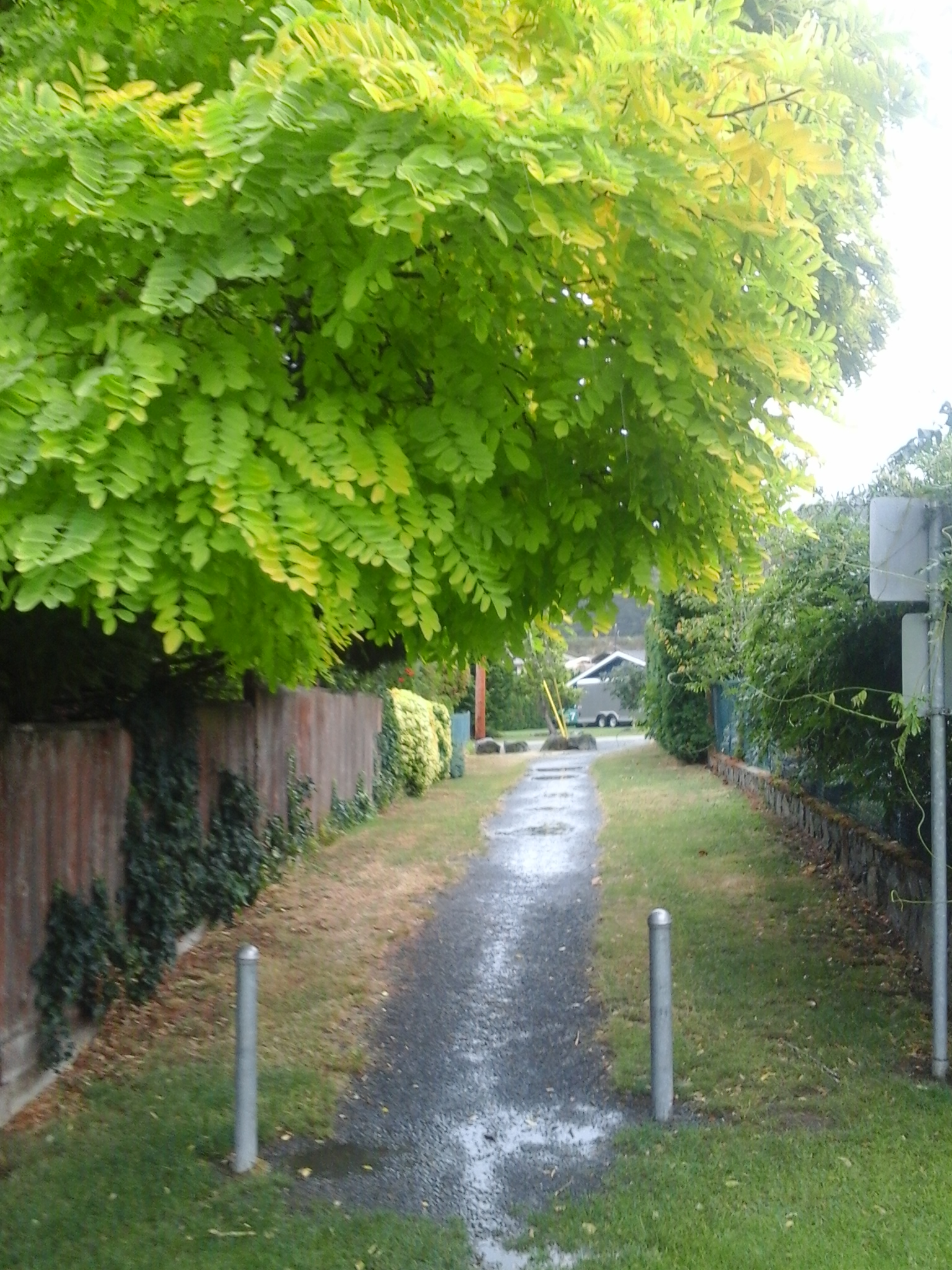Santana Green Spaces are pedestrian walkways in the Goldstream neighborhood of Langford, B.C. These thirty meter long pathways connect Santana Drive to the green space around the Willway Elementary School. They can be used to make a longer walk through the lovely neighborhood. Gold Stream Provincial Park, Mt Wells Regional Park, Harlequin Park, Goldstream Meadows Park, Langford Lake Park and several green spaces are nearby.