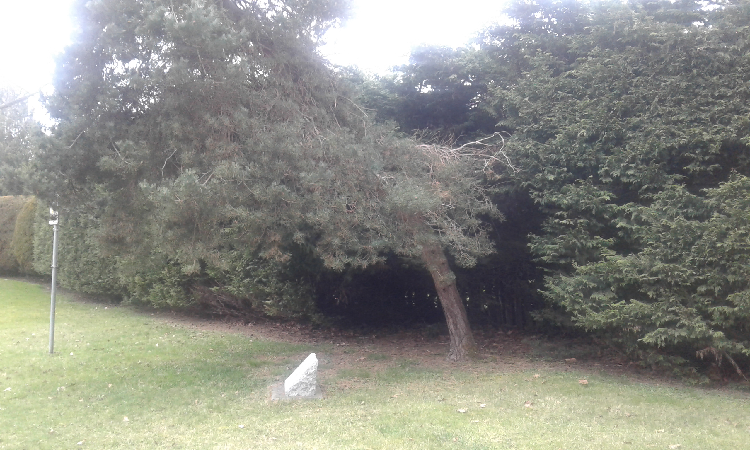 Galbraith Park is in the municipality of Central Saanich, one of the thirteen which form the Capital Regional District of British Columbia. Located on the Saanich Peninsula of Vancouver Island, this small park is named to commemorate the mayor of Central Saanich, Mr. Archibald Galbraith until his death, in office, in nineteen seventy three. The plaque located near the tree displays this information. The park has tall long cedar hedge along its borders and is covered with grass. There are a couple streets in Central Saanich that are named after this politician. The Capital Regional District establish his memorial scholarship that enables a student to attend Lester B. Pearson College in Metchosin. This is a good place to walk in your backyard.