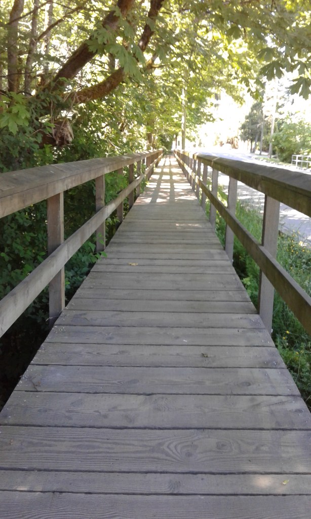 Cooperidge Park is a nature park in the municipality of Central Saanich, one of the thirteen which form the Capital Regional District of British Columbia. Located on the Saanich Peninsula of Vancouver Island, this three and half hectare park has three sections that together form the nature park. The nature park protects a section of the ravine of Tetayut or Sandhill Creek. Tetayut Creek flows from the northern slopes of Bear Hill parallel to Central Saanich Road through Cooperidge Park into the Salish Sea at Saanichton Bay. The watershed of Tatayat Creek is about one thousand one hundred and eighty hectares. It is mostly bordered by agriculture fields and grass covered areas. This parkland contains the riparian area that provides shade and cooling of the creek and wetlands. The ravine has second growth cedar fir and big leaf maple trees along its banks. There are many ferns, blackberries and small shrubs found here. The wildlife includes many birds and small animals. This park is best viewed the walkway along East Saanich Road that overlooks the park’s ravine. Several ongoing projects may permit pedestrian access into sections of the park. This is a good place to walk in your back yard.
